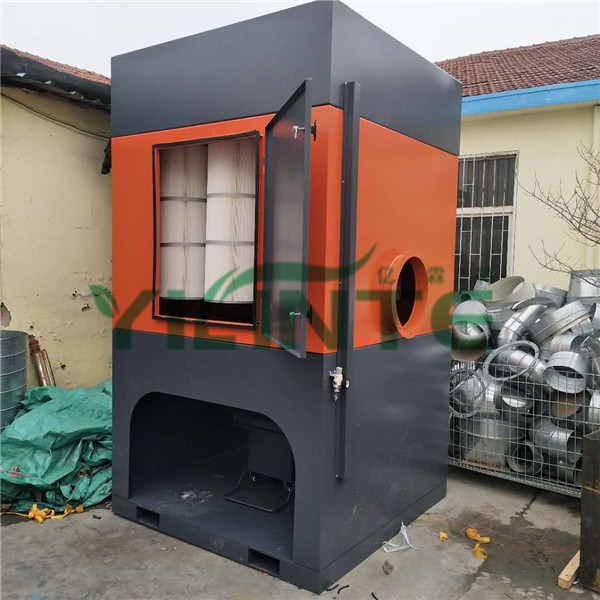 本除塵器一般為負(fù)壓運(yùn)行,含塵氣體由進(jìn)風(fēng)口進(jìn)入箱體,在折疊濾筒內(nèi)負(fù)壓作用下,含塵氣體